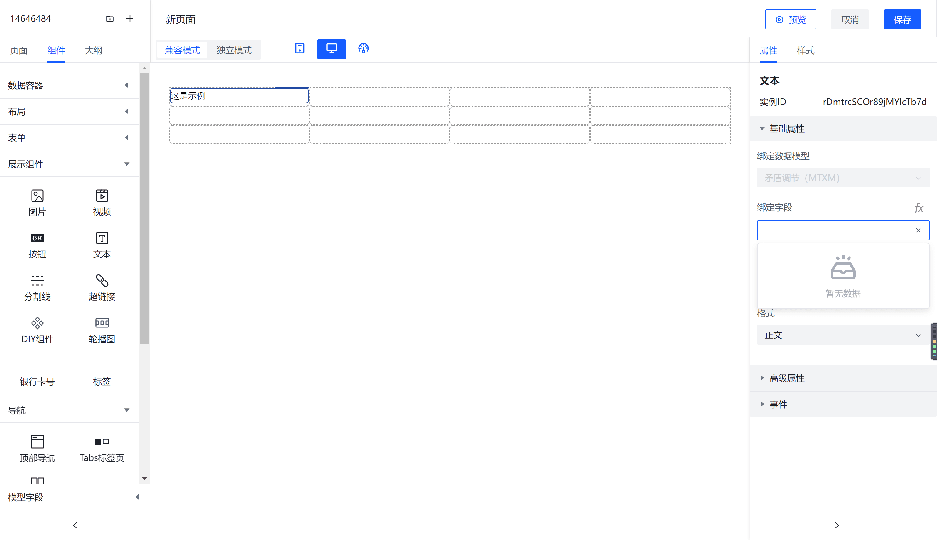 | 无数据提示 | 当查询为空时,提示该行设置的字段 |