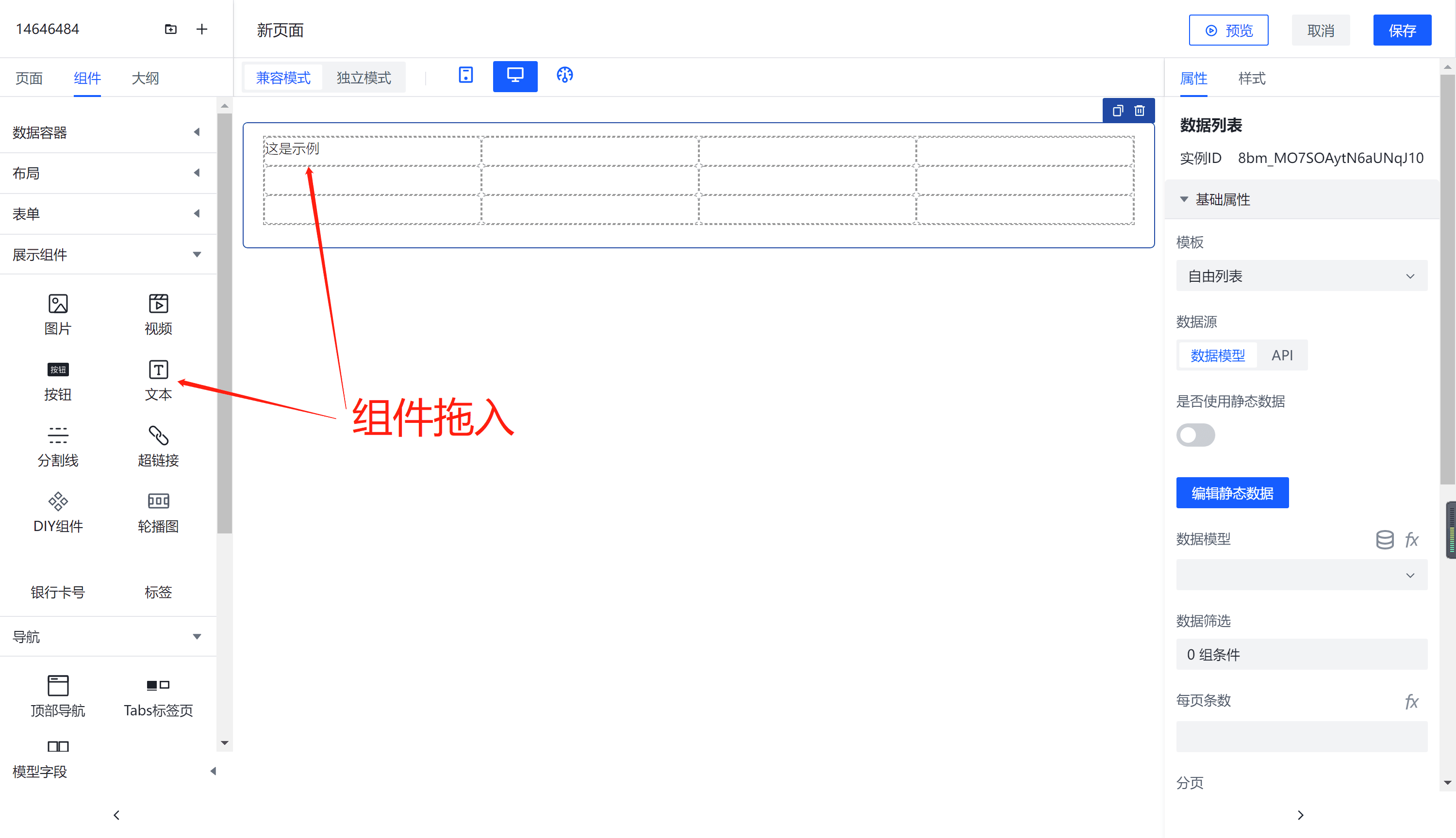 | 静态数据 | 用户根据使用的数据源进行调整,可使用数据模型提供的数据源,也可以使用 API 提供的数据模型 |